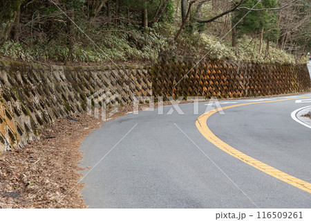 山道のカーブした道路