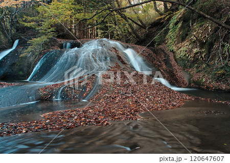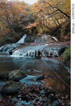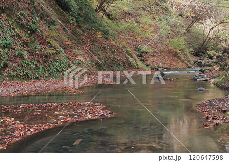 福島県西郷村 西の郷遊歩道脇の阿武隈川 秋の景観