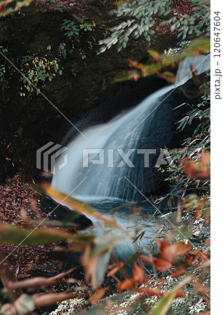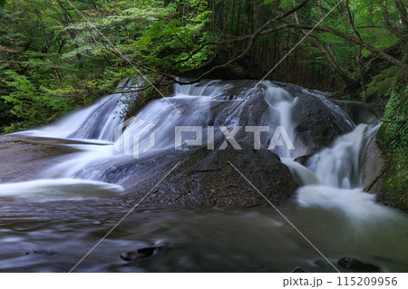 緑の中を流れる滝