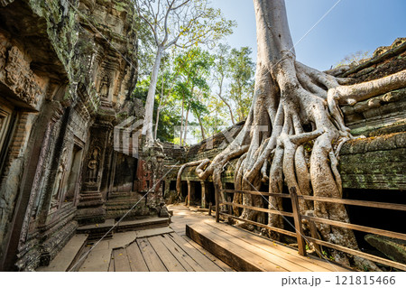 カンボジア タプローム遺跡の巨大なガジュマルの木