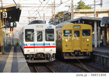 宇部線 居能駅 クモハ105-14とクモハ123-5