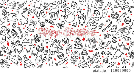 Christmas doodle set, hand drawn New Year holiday sketch winter celebration party illustrations.