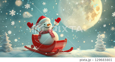 トナカイのソリに乗ってプレゼントを配るサンタクロースの3dイラスト
