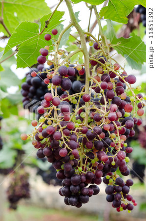 ripening grape clusters on the vine
