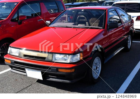 駐車場に並ぶ乗用車 (トヨタ・カローラレビン 4代目 AE86型)