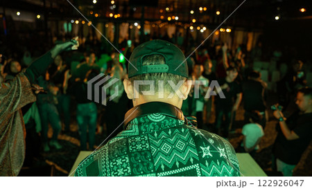 DJ Plays to Energetic Crowd at Outdoor Music Festival Under Bokeh Lights