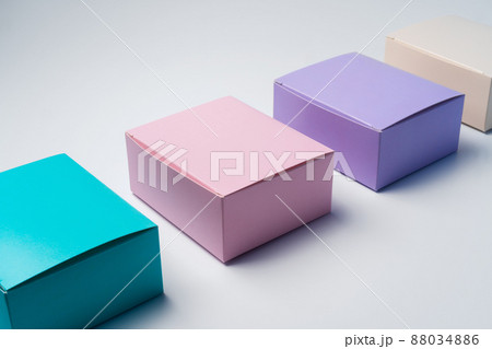 stripe pink and blue paper box on white background