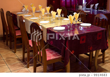 yellow and claret coloured restaurant table