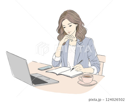 仕事に集中する女性ビジネスシーン手書きメモ