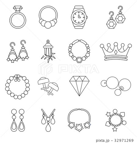 Jewelry icon set, outline style