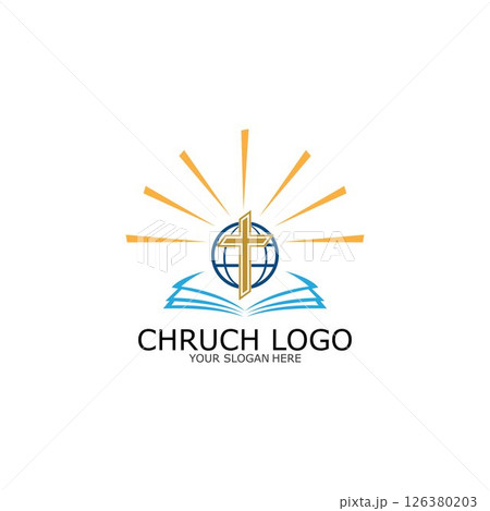 logo church.christian symbol,the bible and the cross of jesus christ-vector