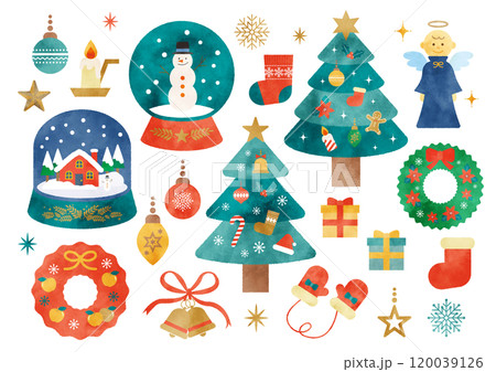 水彩のかわいいクリスマスのイラスト素材