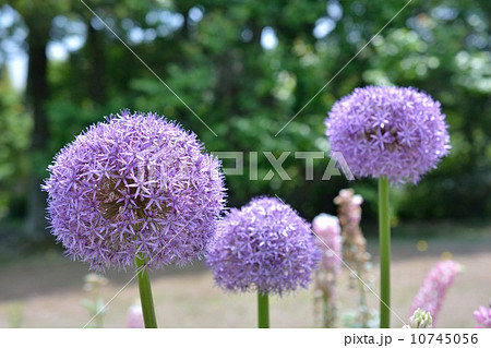 春に咲く花、薄紫色のアリウム、クリストフィ
