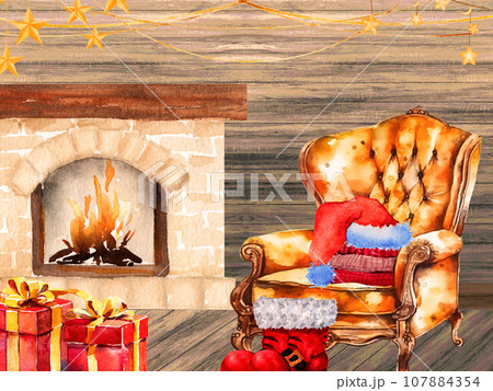 水彩で描かれたクリスマスブーツとプレゼントのイラスト素材