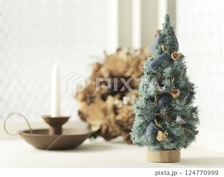 卓上クリスマスツリーとリース クリスマスイメージ