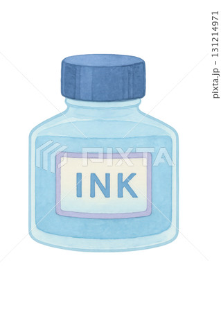パステルブルーのインク瓶の水彩イラスト PNG 透過背景