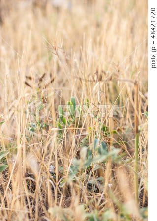 The European mantis in dry yellow grass