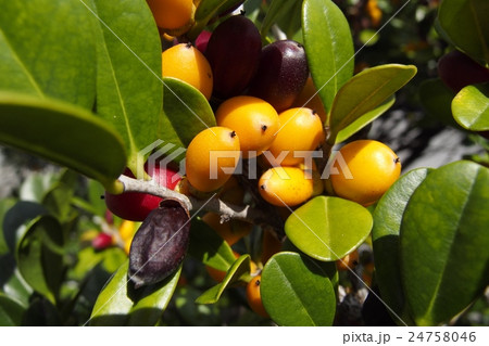 自然 植物 ヤエヤマコクタン、『リュウキュウコクタン』。小さく地味な花に対し、大きくカラフルな実