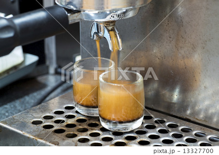 透明のコーヒーカップに注がれるエスプレッソコーヒー