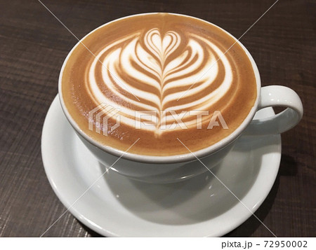 Ayurvedic coffee cappuccino cup in trendy american cafe. Milk foam in rosetta latte art
