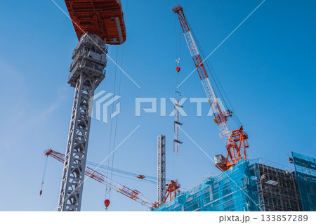 クライミングクレーンのマストの接写。建設現場のイメージ