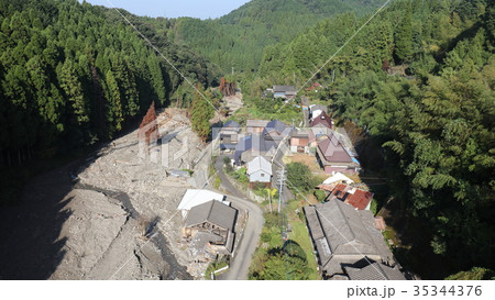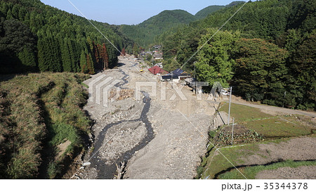 空撮 2017年10月9日撮影 九州北部豪雨後の朝倉市・黒川疣目