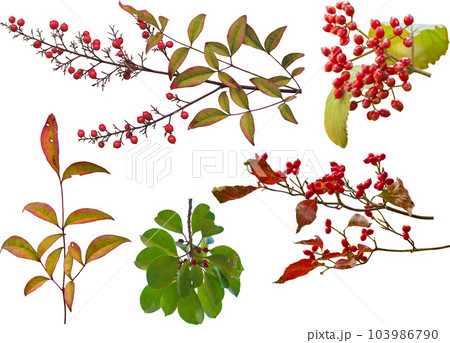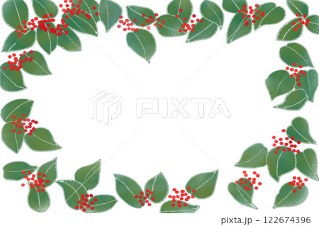 縁起のよい木のクロガネモチの葉と赤い実です。幸せを呼ぶ場面にどうぞ。
