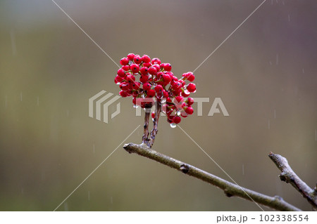クロガネホーリー(モチノキ)の赤い実がなった枝