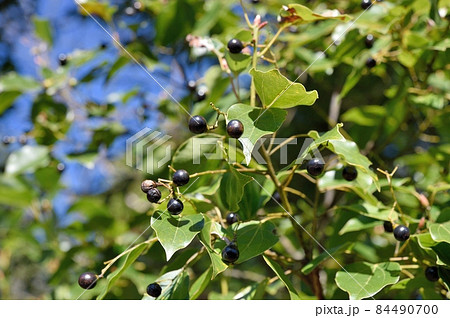 自然 植物 クロキ、黒く色づき始めた九月の果実。冬には全部真っ黒になるはずです