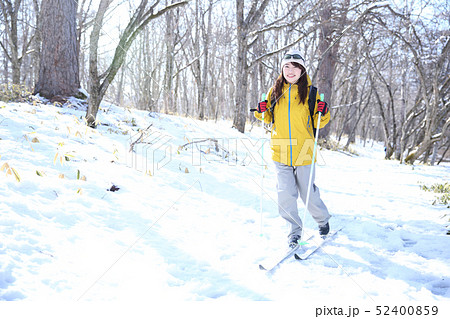 冬のレジャーを楽しむ女性