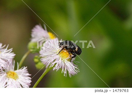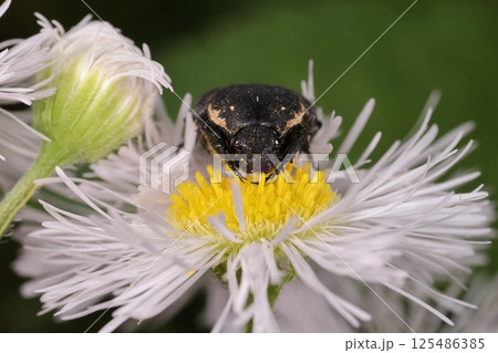 ハルジオンの花に止まるクロハナムグリ