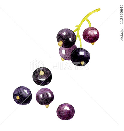 カシスのセット フルーツの手描き水彩イラスト素材集