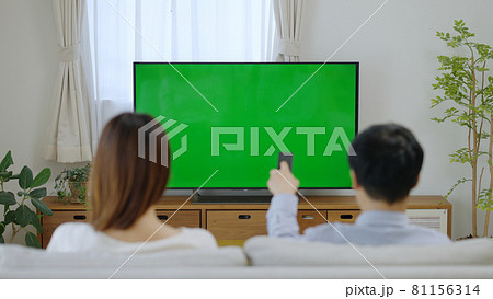 家でテレビを見る夫婦・カップル(クロマキー)