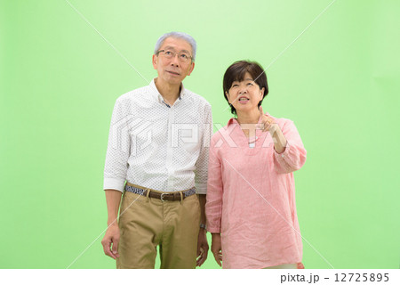 クロマキーを利用した切り抜きのためのポーズ素材ーカジュアルウェアーを着た、シニア夫婦イメージ(春・夏)