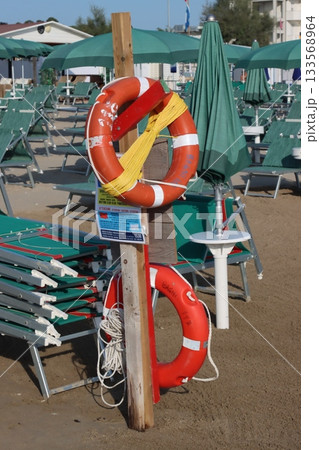 Parasols and sunbeds in Rimini resort beach