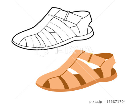 Gladiator sandal shoe women sketch pair. Multi strap flat sandal for casual summer outfit festival look. Technical