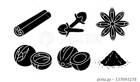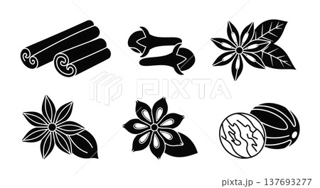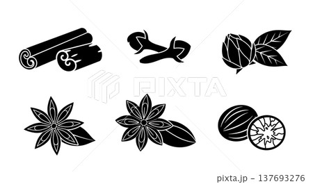 Black Solid Autumn Spice and Herb Icon Silhouettes Set of Six