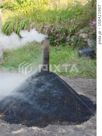 もみ殻から籾殻くん炭作り
