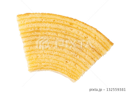 カットされたバウムクーヘンとカフェラテ【白背景】
