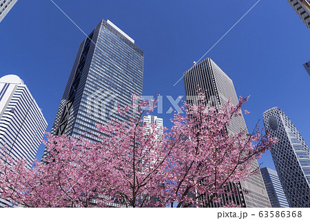 都市風景 桜咲く新宿副都心の高層ビル群 東京都