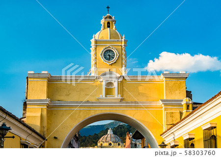 Arco de Santa Catalina and Volcan de Agua in Antigua Guatemala, Central America