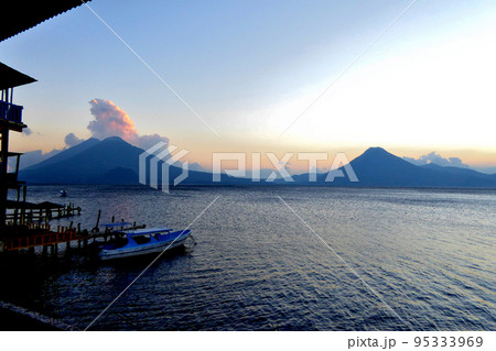 グアテマラのアティトラン湖の夕景