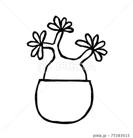パキポディウム・グラキリス 線画 手描き イラスト モノクロ
