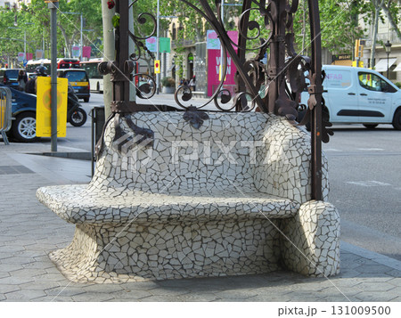 スペイン バルセロナ グラシア通りのベンチ 5月の晴れの日