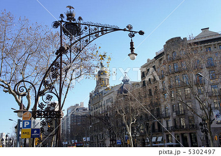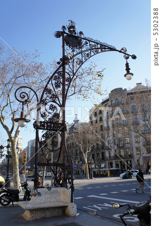 スペイン バルセロナ グラシア通りの街灯 5月の晴れの日