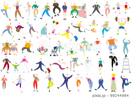 シンプルな切り絵風のいろいろな人々のセット