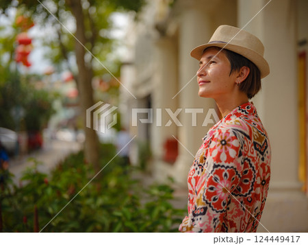 woman exploring streets of George Town, during Chinese New Year.