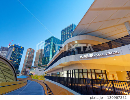 夕暮れのJR大阪駅 うめきたエリアと高層ビル