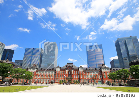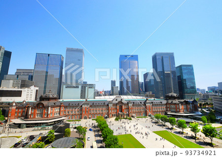 日本の東京都市景観 東京駅赤レンガ駅舎や丸の内、八重洲などのオフィスビル群を望む
