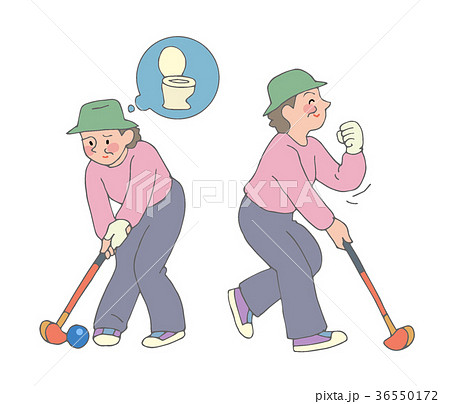 パークゴルフを楽しむ男女 イラスト(主線なし)